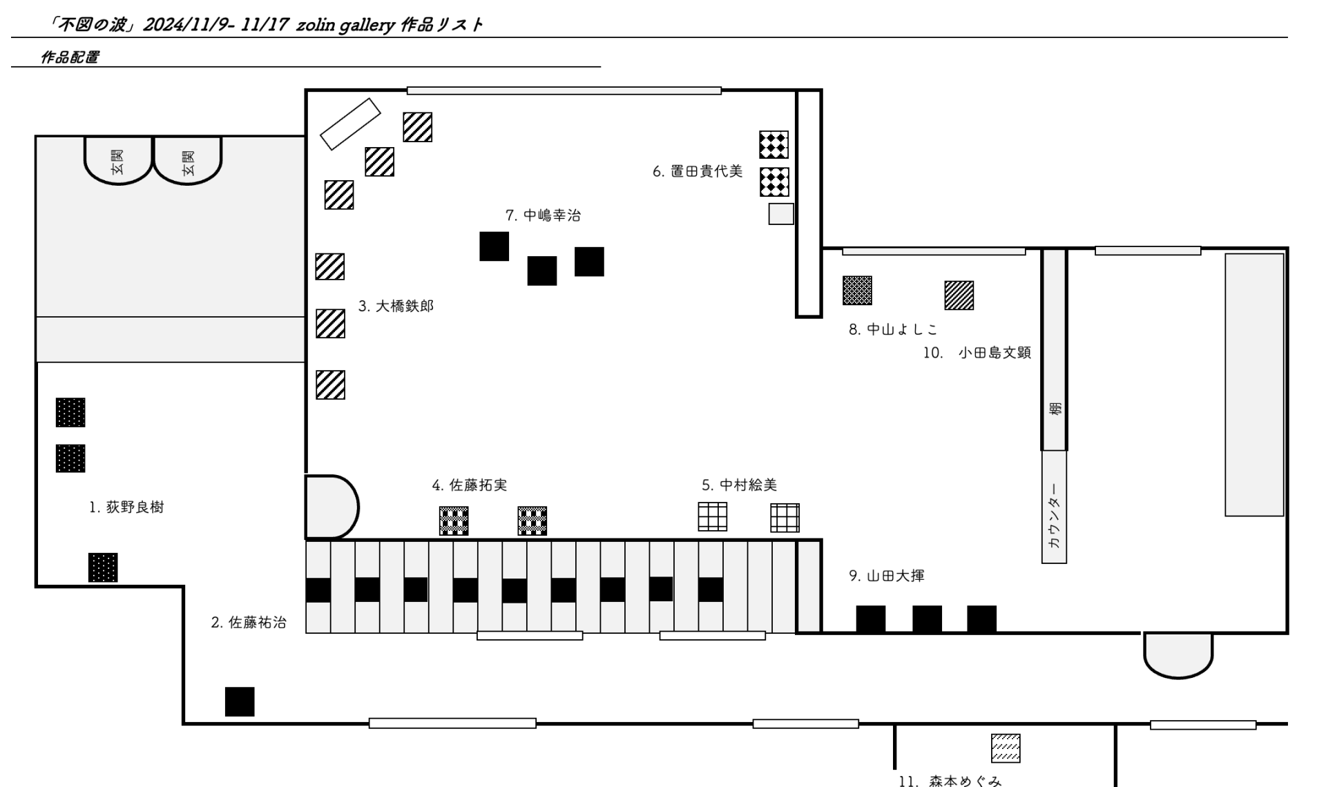 出展者(敬称略・50音順):大橋 鉄郎/置田 貴代美/荻野 良樹/小田島 文顕/佐藤 拓実/佐藤 祐治/中嶋 幸治/中村 絵美/中山 よしこ/山田 大揮